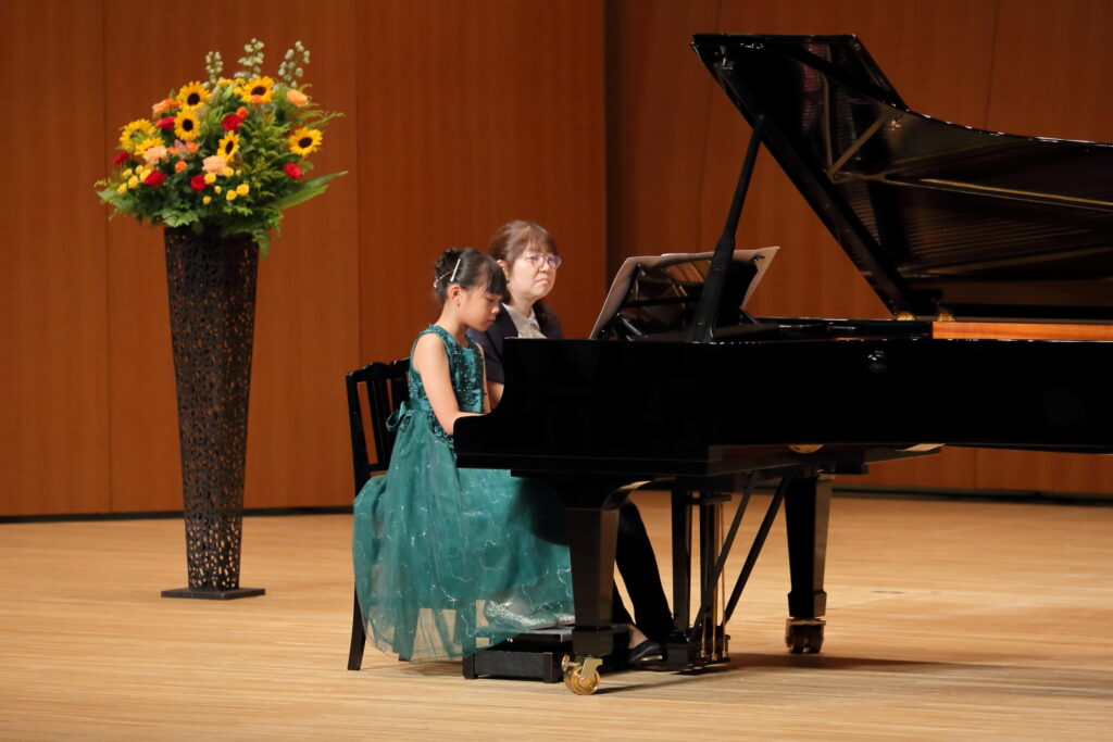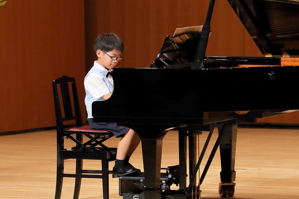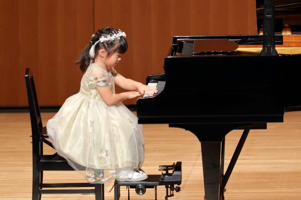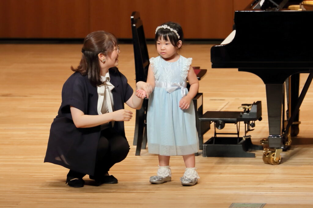 2025年の夏の発表会! 投稿者:tobemusic 投稿公開日:2026年4月16日 投稿カテゴリー:未分類 投稿コメント:0件のコメント こんにちは!トベ音楽教室の渡部です♪ 昨年の夏の発表会の生徒の皆さんの頑張りを、ご紹介します!本当に毎年毎年、一人一人の成長に、感動せずにはいられません。 初めての発表会だった小さなピアニストさん達もいっぱい!ドキドキしながらも、先生と連弾したり、ソロ曲に挑戦しました。一人でステージに立つことは、本当に勇気のいること。そんな中で、堂々として演奏姿を見せてくれて、保護者の方も感動いっぱいの1日となりました。 男の子も、堂々とかっこいい演奏を披露してくれました!いつもはふざけたりすることも多い男子達ですが、ステージでは本当に一生懸命です! 学年が上がるにつれ、どんどん曲の難易度も表現力も磨かれていき、素晴らしい演奏を披露してくれました!小さな生徒さんは、お姉さんや、お兄さんたちのように演奏できるようになりたい!と憧れを抱いたり、何年も続けるとこんな風になれるんだ!と勇気をもらえたりしています。 ロビーでは毎年頑張って代表の渡部が頑張って作成しているフォトブースで、ご家族やお友達と沢山写真を撮ってくれました!舞台裏では、ドキドキの表情。でも、舞台でやり切った後の笑顔や清々しい表情を見れた時、本当によく頑張ったね!と心から嬉しくなる瞬間です。 今年も継続賞を表彰された生徒さん達。継続することは、何より素晴らしい財産になると思っています。始めたばかりの小さな生徒さん達も、まずは5年継続賞を目指して頑張ってね♪今年も、一人一人が輝ける発表会になるよう、レッスンも発表会準備も精一杯心を込めて準備しています。お友達の演奏を聴いて刺激を受けたり、自分自身の成長を感じたり、やり切った後の最高の気分を味わったり、本当に沢山の心の成長に繋がることを、いつも祈っています! おすすめ クリスマス発表会!リトミック 2024年1月13日 松山市ドラム教室|ピアノもドラムも楽しめるピアドラコース! 2024年4月27日 ピアノコースからマスターコースへ!初めてのコンクール挑戦 2023年3月25日 コメントを残す コメントをキャンセルコメントコメントする名前またはユーザー名を入力してください メールアドレスを入力してコメント Web サイトの URL を入力してください。(任意) 次回のコメントで使用するためブラウザーに自分の名前、メールアドレス、サイトを保存する。