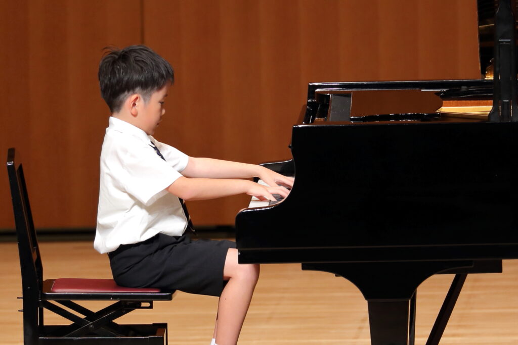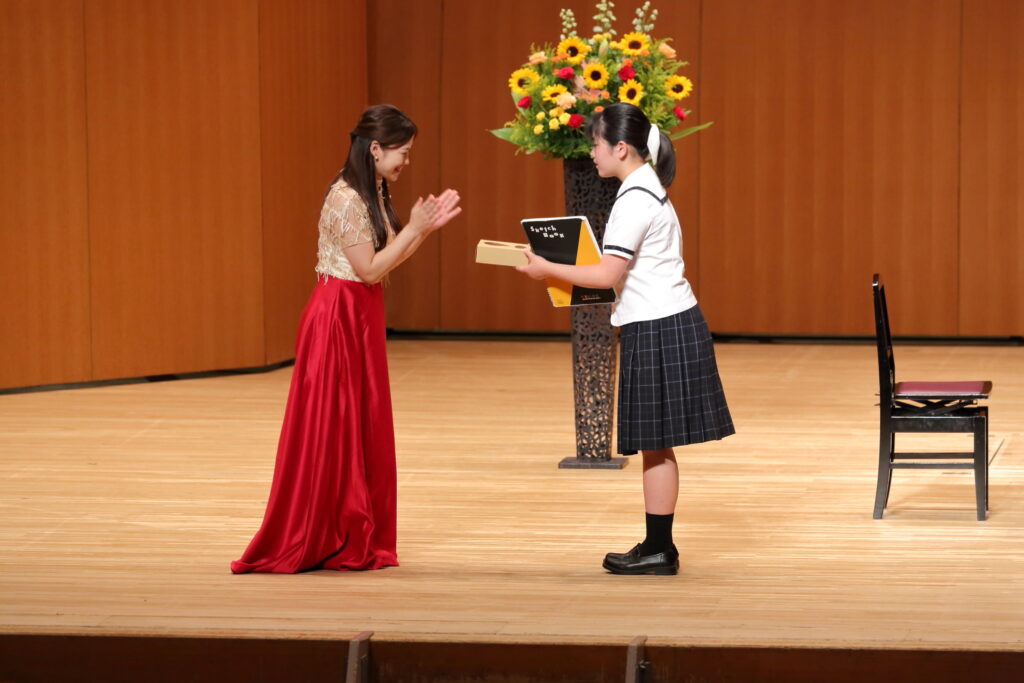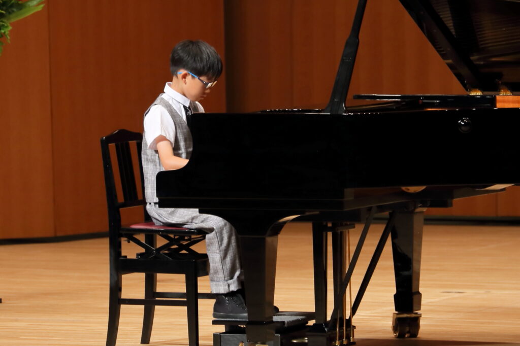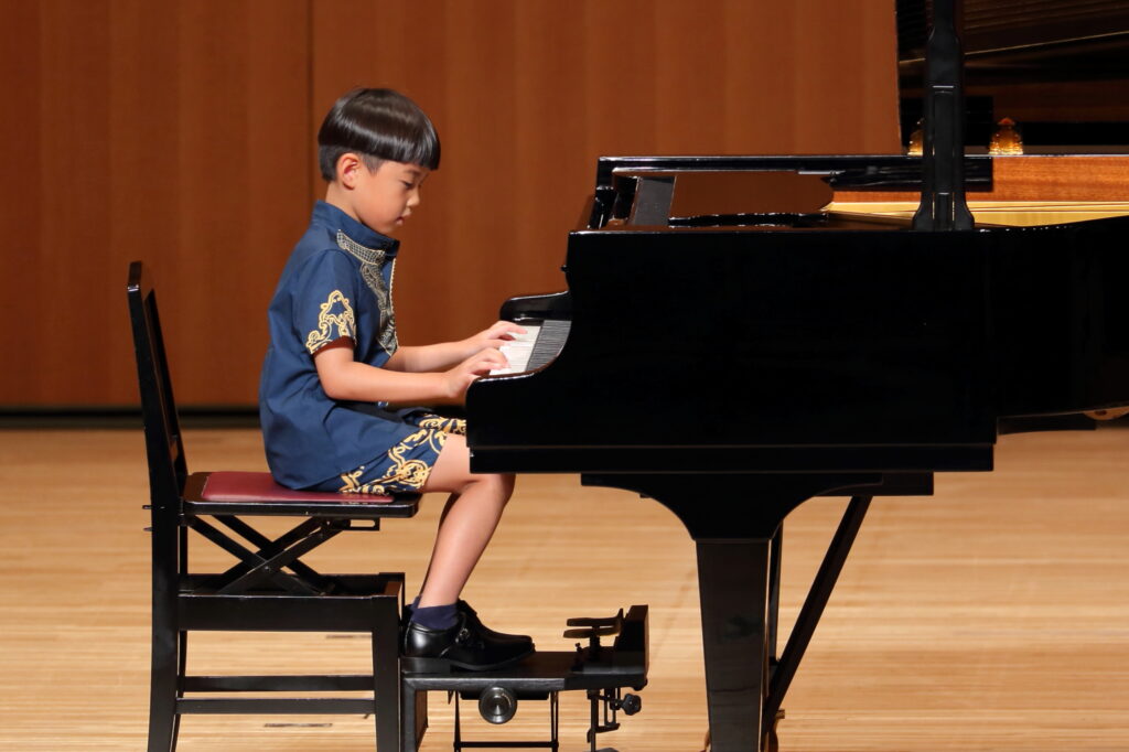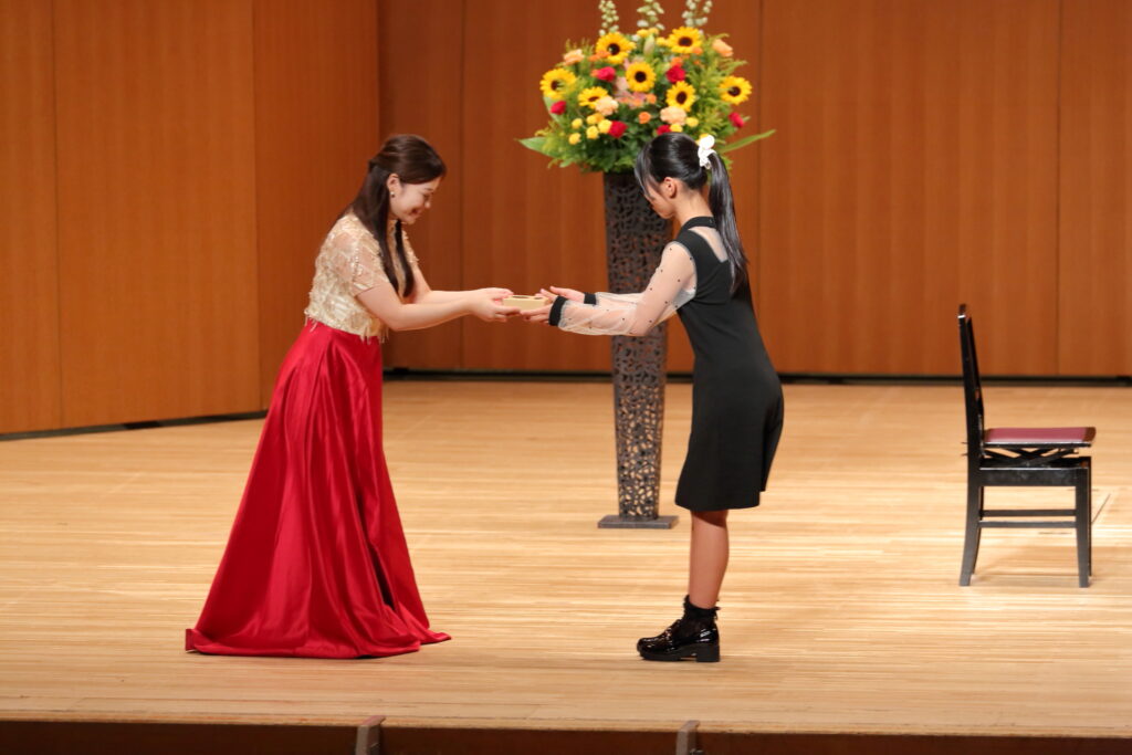 2025年の夏の発表会! 投稿者:tobemusic 投稿公開日:2026年4月16日 投稿カテゴリー:未分類 投稿コメント:0件のコメント こんにちは!トベ音楽教室の渡部です♪ 昨年の夏の発表会の生徒の皆さんの頑張りを、ご紹介します!本当に毎年毎年、一人一人の成長に、感動せずにはいられません。 初めての発表会だった小さなピアニストさん達もいっぱい!ドキドキしながらも、先生と連弾したり、ソロ曲に挑戦しました。一人でステージに立つことは、本当に勇気のいること。そんな中で、堂々として演奏姿を見せてくれて、保護者の方も感動いっぱいの1日となりました。 男の子も、堂々とかっこいい演奏を披露してくれました!いつもはふざけたりすることも多い男子達ですが、ステージでは本当に一生懸命です! 学年が上がるにつれ、どんどん曲の難易度も表現力も磨かれていき、素晴らしい演奏を披露してくれました!小さな生徒さんは、お姉さんや、お兄さんたちのように演奏できるようになりたい!と憧れを抱いたり、何年も続けるとこんな風になれるんだ!と勇気をもらえたりしています。 ロビーでは毎年頑張って代表の渡部が頑張って作成しているフォトブースで、ご家族やお友達と沢山写真を撮ってくれました!舞台裏では、ドキドキの表情。でも、舞台でやり切った後の笑顔や清々しい表情を見れた時、本当によく頑張ったね!と心から嬉しくなる瞬間です。 今年も継続賞を表彰された生徒さん達。継続することは、何より素晴らしい財産になると思っています。始めたばかりの小さな生徒さん達も、まずは5年継続賞を目指して頑張ってね♪今年も、一人一人が輝ける発表会になるよう、レッスンも発表会準備も精一杯心を込めて準備しています。お友達の演奏を聴いて刺激を受けたり、自分自身の成長を感じたり、やり切った後の最高の気分を味わったり、本当に沢山の心の成長に繋がることを、いつも祈っています! おすすめ クリスマス発表会!リトミック 2024年1月13日 松山市ドラム教室|ピアノもドラムも楽しめるピアドラコース! 2024年4月27日 ピアノコースからマスターコースへ!初めてのコンクール挑戦 2023年3月25日 コメントを残す コメントをキャンセルコメントコメントする名前またはユーザー名を入力してください メールアドレスを入力してコメント Web サイトの URL を入力してください。(任意) 次回のコメントで使用するためブラウザーに自分の名前、メールアドレス、サイトを保存する。